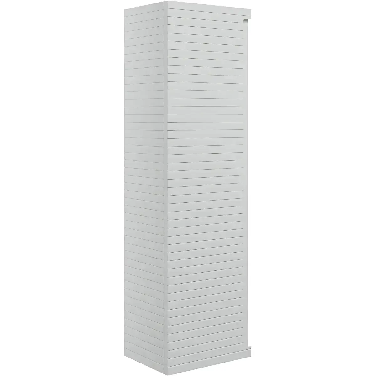 Introducing the Alight Matt Grey Wall Hung Tall Boy Unit - a sturdy and stylish addition to your space. Made with durable 16mm materials on the cabinet, sides, back, and door, this unit is built to last. The handleless design and soft horizontal fluted lines give it a textured and modern look, and the wrap-around drawer box adds practicality. Equipped with Emuca soft close door hinges, this unit has a height of 1200mm, width of 350mm, and depth of 270mm. Inside, you'll find three fixed shelves with a linen effect finish. Featuring three hinges, this unit can be hung with the door opening to the left or right, providing flexibility in placement.