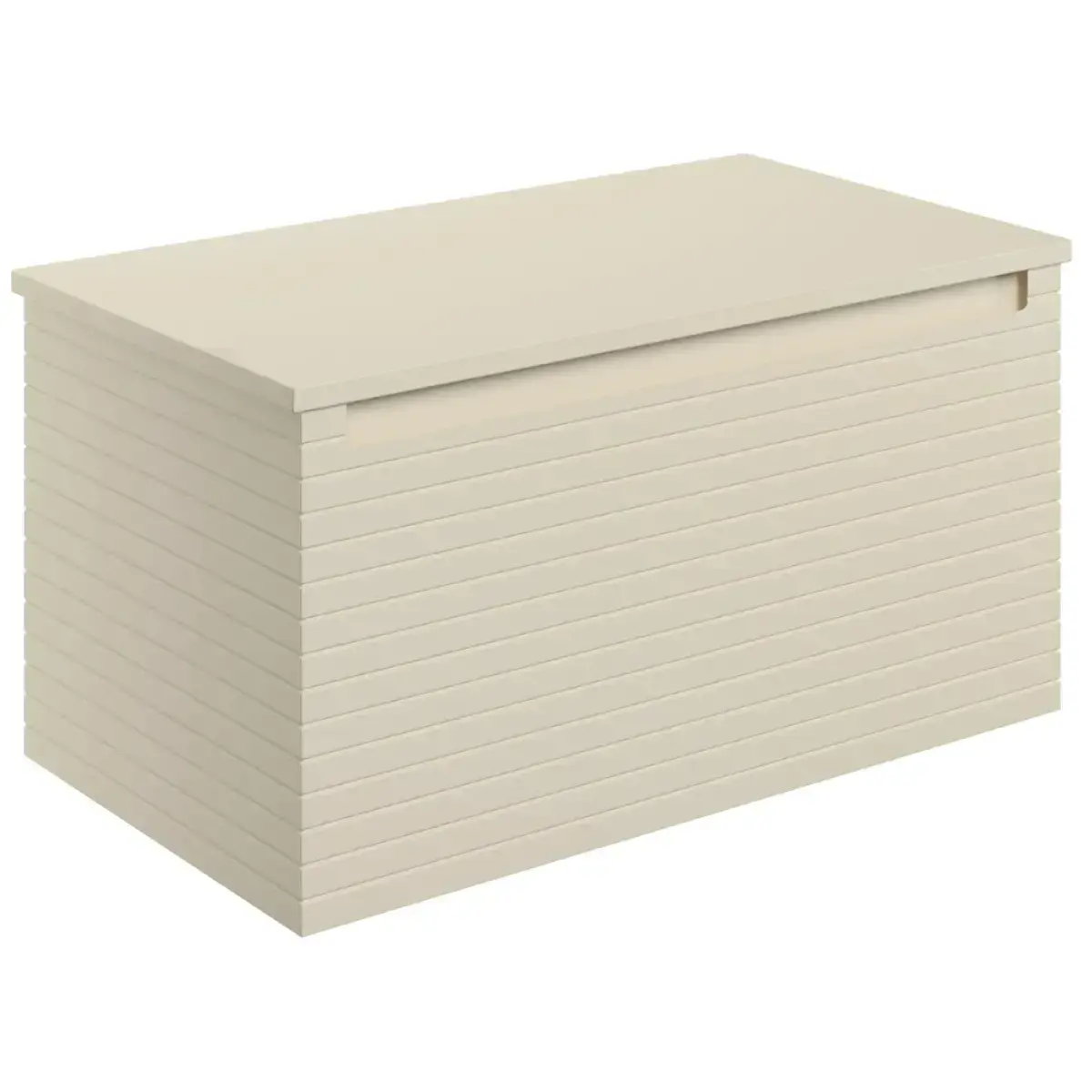 The handleless design adds a contemporary touch, while the textured horizontal fluted lines offer a distinct aesthetic. The wrap-around drawer box provides ample storage, making it a practical addition to your bathroom.