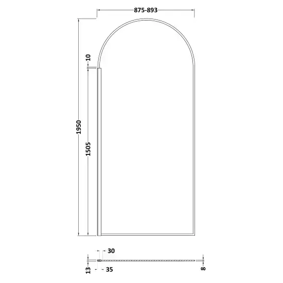 Nuie 900mm Arched Wetroom Screen 8mm Toughened Glass