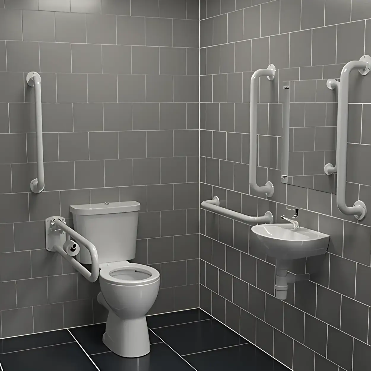 This Doc M Pack is to be used in commercial and disabled bathroom situations such as shops, offices and warehouses but can also be used in homes where grab bars and a comfort height toilet are required.