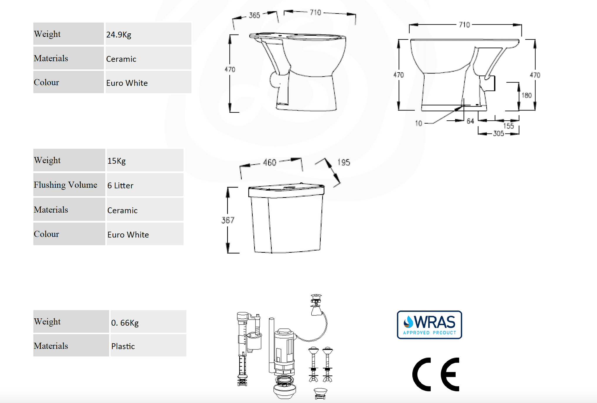 Doc M Disabled Toilet: Rimless Toilet Pan, Cistern (dual flush) complete with fittings & seat ring - Pan Height 480mm (inc seat)