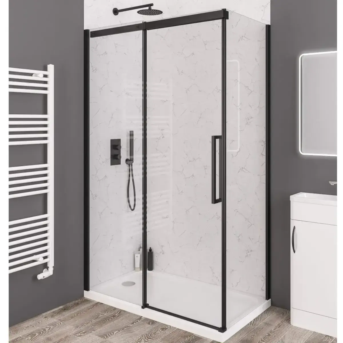 Corniche 2000 Matt Black 8mm Sliding Shower Door