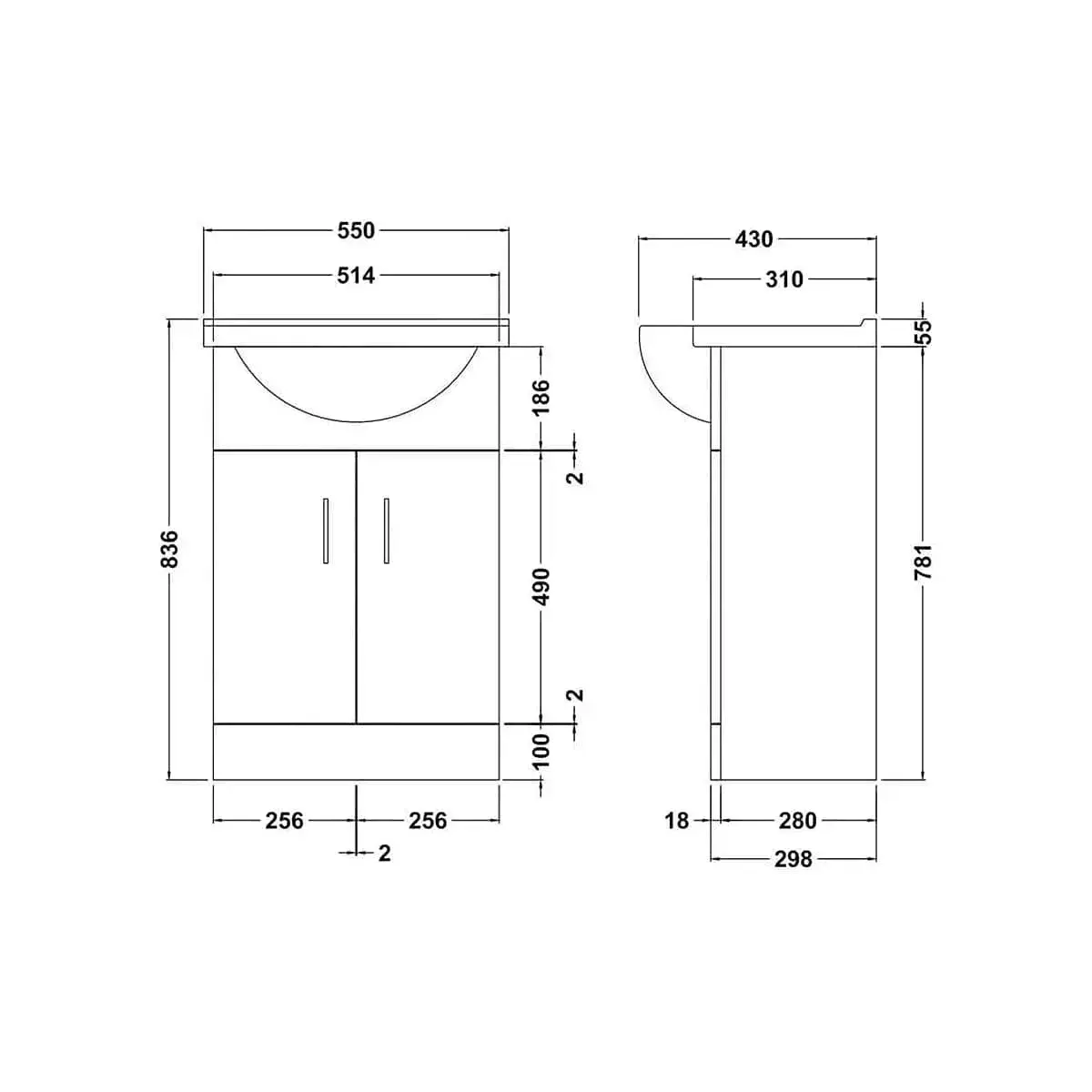 • Basin Dimension: W 550mm x Projection 440 mm