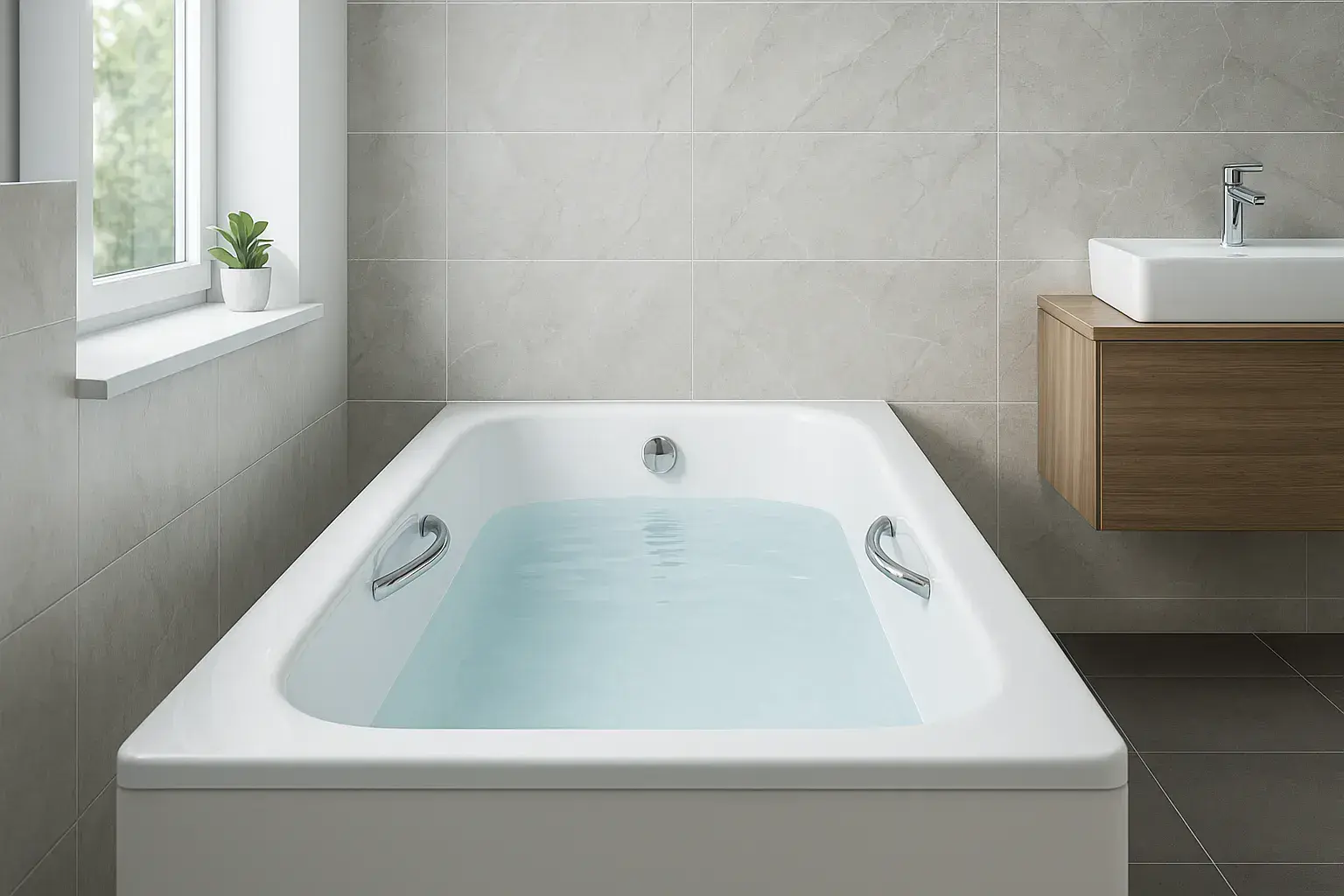 Includes Bath Leg Set & Chrome Bath Grips.