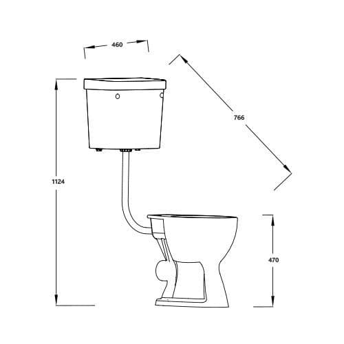 Doc M Disabled Toilet: Rimless Toilet Pan, Push Button Cistern, Flushpipe Set, complete with fittings & seat ring - Pan Height 470mm (inc seat)