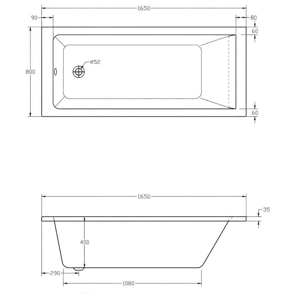 Q: Why is the 1650 x 800mm size special? A: This is currently the only bath on the market that combines a rare 1650mm length with a luxurious 800mm width. Most other 1650mm baths are only 700mm wide. This allows you to fit a bath into a tighter "Imperial" sized gap (approx. 5ft 5in) while still enjoying the spacious comfort of a wide, luxury tub.
