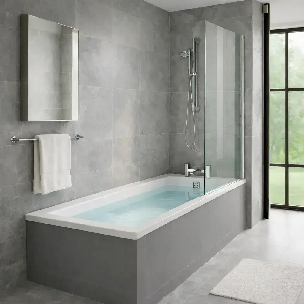 Q: Will a standard bath screen fit? A: Yes. Even though the bath is wider (800mm), the rim is flat and square, meaning standard universal bath screens can be fitted easily.