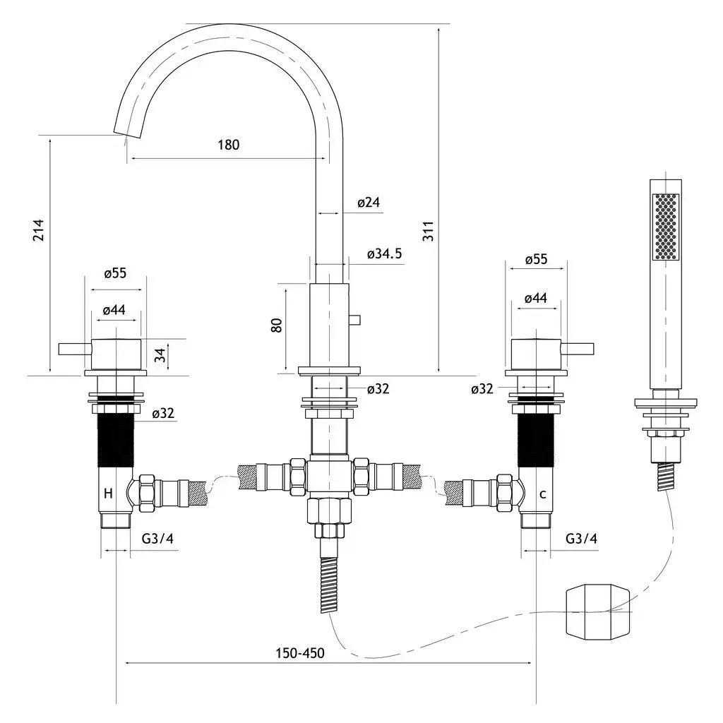 • Four Tap Hole Design: With a deck-mounted four-hole setup, this mixer tap offers precise control over water flow and temperature, providing an enhanced bathing and showering experience.