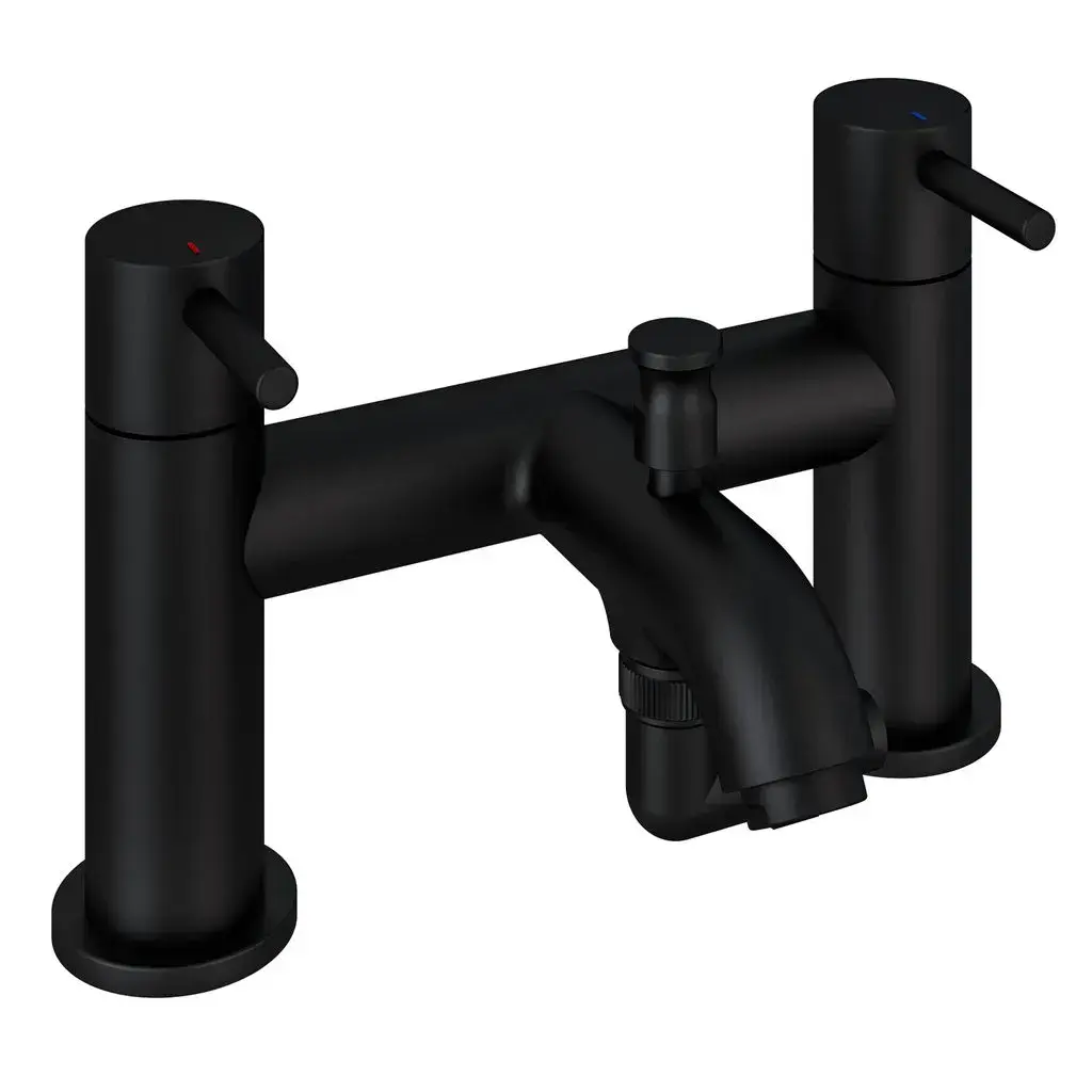 The Meriden Bath Shower Mixer Tap with Handset, Hose, and Holder in Matt Black brings a bold, contemporary style to your bathroom. With a sleek matte black finish, this bath shower mixer is perfect for a modern aesthetic. The tap features a streamlined mixer control, a handheld shower head, a flexible hose, and an integrated holder, providing versatility for both bath filling and showering. Made from high-quality brass, this mixer tap promises durability and performance, ensuring that your bathroom remains both stylish and functional.