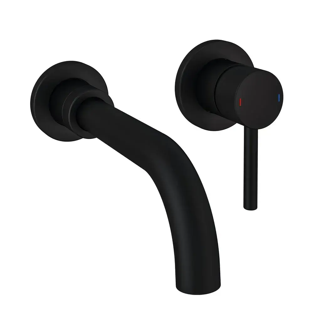 The Meriden Wall Mounted Basin Mixer Tap with Curved Spout - Matt Black combines contemporary design with functional elegance, making it a perfect addition to any modern bathroom. Its striking matt black finish not only enhances the aesthetic appeal but also ensures that your tap remains free from unsightly fingerprints and water spots. Crafted from durable brass, this mixer tap promises longevity and reliability. The thoughtfully designed curved spout provides smooth water flow while adding a touch of sophistication to your basin area.