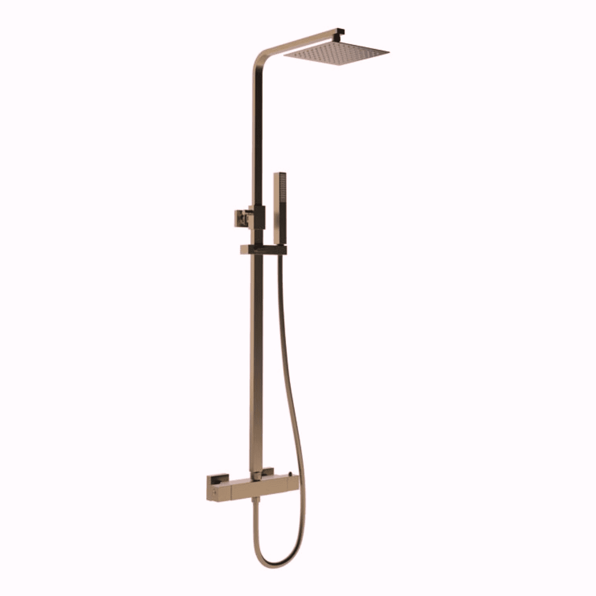 Brushed Bronze Square Thermostatic Shower Set - Brushed Bronze. A contemporary shower design in a Bronze.